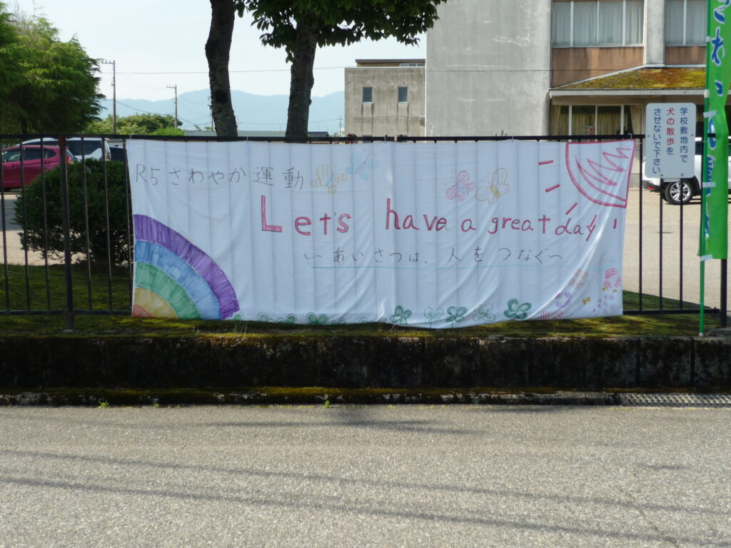 さわやか運動を行いました学校行事, 生徒会 / 2023年6月26日 本校PTA役員・自治委員・生徒会役員が早朝から挨拶運動を展開しました。21日には、福岡小学校で、福岡中学校生徒とともに挨拶運動を実施しました。