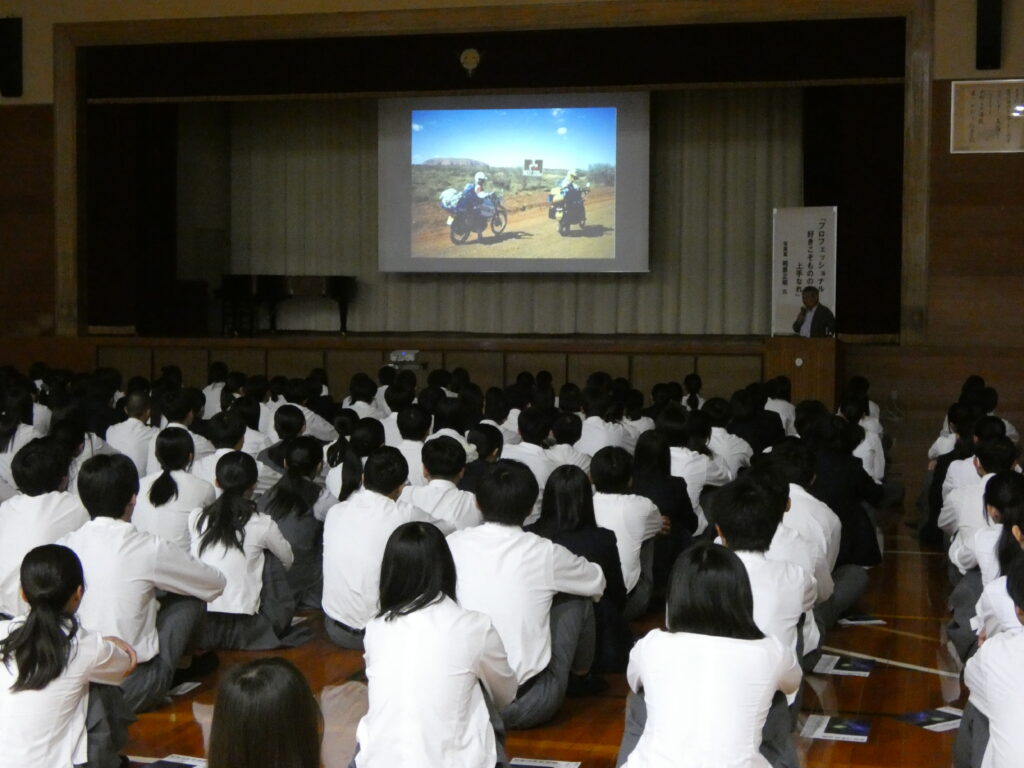 相原正明氏の講演会を実施しましたインフォメーション, 学校行事 / 2025年10月16日 10月16日(木)、写真家の相原正明さんをお招きして、講演会を実施しました。 福岡町で開催されている写真展「On The Earth」の関連事業としてお声がけいただき、「プロフェッショナル 好きこそものの上手なれ」という演題でご講演いただきました。