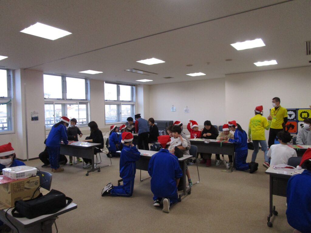 クリスマス会に参加しましたインフォメーション / 2025年12月10日 12月7日(日)、高岡市手をつなぐ育成会主催のクリスマス会に、本校から生徒会、ボランティア委員の生徒15名がボランティア活動の一環として参加しました。7家族9名の児童と、工作や歌・ダンスなどを通して交流を深めました。